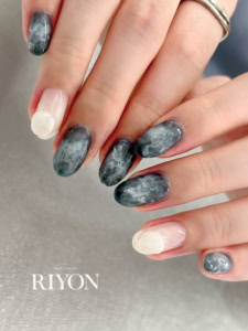 2025/08/25 ■■trend art course今月のピックアップネイルはこちら。モヤモヤのニュアンスとホワイトのコントラストが映え指先がとても綺麗に見えます。 アートネイル トレンドアート ニュアンス フィルイン モダンネイル モヤモヤ
